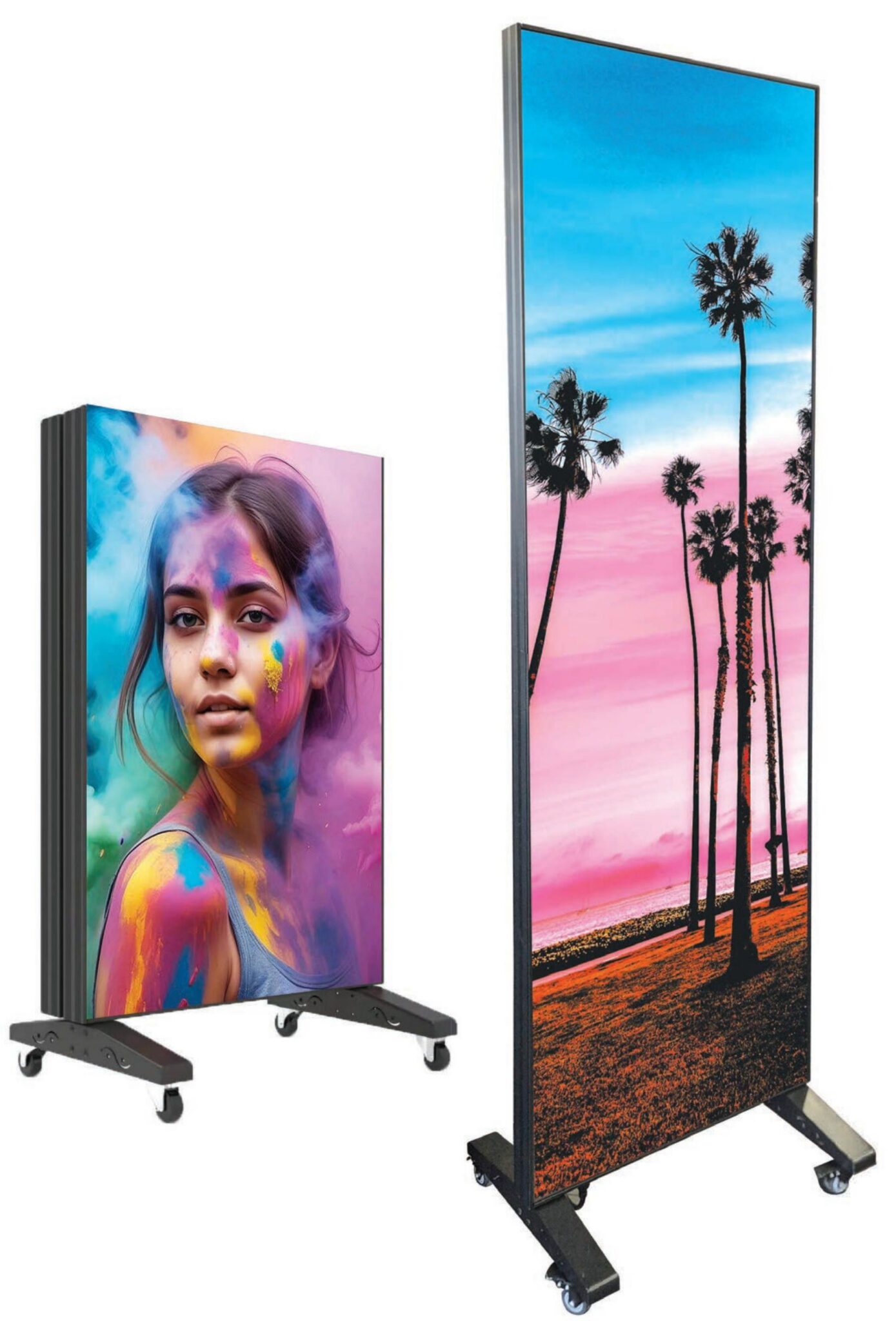 Totem Ledwall modulare per interni leggero e sottile, grazie alle ruote ed alla possibilità di chiudersi su se stesso a 180°. Controllo wireless tramite app per caricamento e programmazione dei contenuti. Schermo con rivestimento antiurto, risoluzione in HD dai colori vivaci e ad alto contrasto.